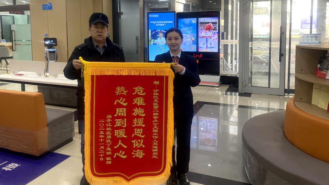 “多亏了你们的专业救助,为我争取了宝贵的黄金时间!”近日,乌鲁木齐市沙依巴克区政务服务中心上演了暖心一幕:康复后的市民丁先生将一面印有“危难施援恩似海,热心周到暖人心”的锦旗,送到了工作人员手中。