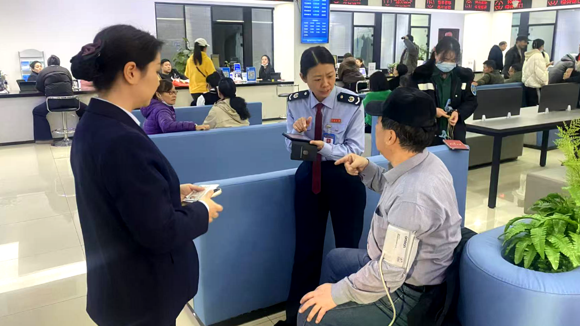 时间回到11月19日上午,丁先生在政务大厅等候时,突然面色苍白、呼吸困难,随即蹲坐在地,双手紧捂胸口。这惊险一幕,被正在巡查的中心经理迪娜一眼发现。“您是不是心脏不舒服?带药了吗?”她飞奔上前询问。在确认丁先生随身携带急救药品后,迪娜迅速协助其服下。与此同时,其他同事已果断拨打120,清晰说明了现场情况。