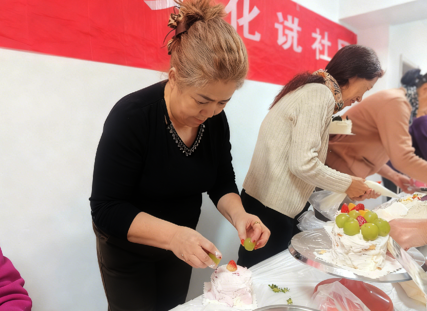 “平时很少有机会自己动手做这些,今天在师傅指导下,能做出这么漂亮的蛋糕,真的太有成就感了!”居民李萍捧着自己的作品,脸上洋溢着自豪的笑容,“而且和大家一边做一边聊天,感觉特别开心。”