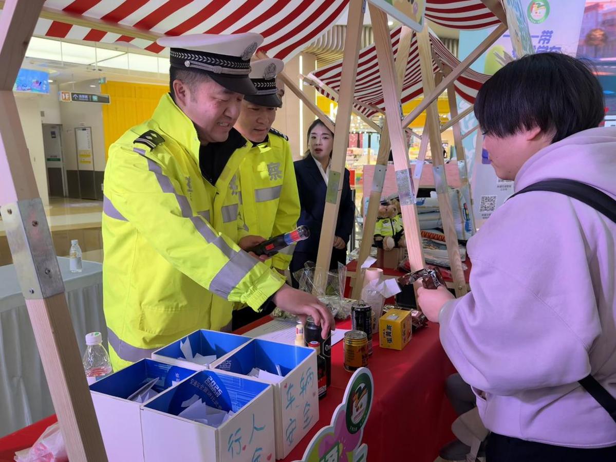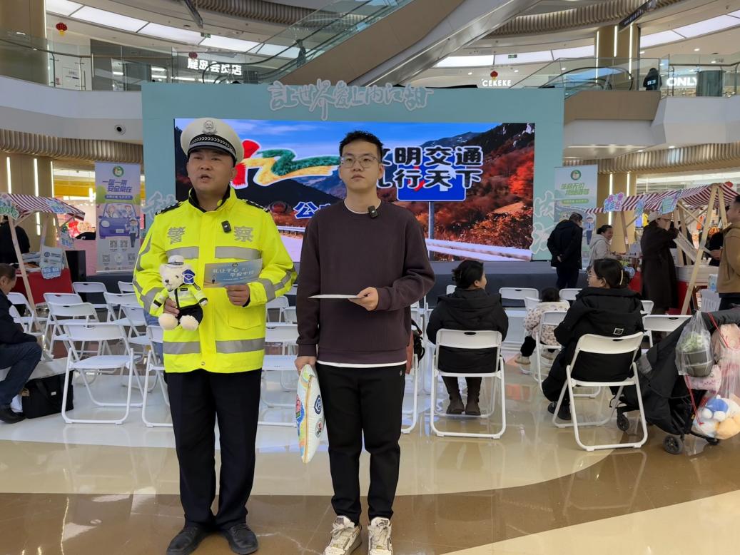 本次活动现场设置了多项互动环节,包括“标志对对碰”、“酒驾体验”、“知识大转盘”等趣味互动游戏,并通过播放交通安全短片、民警现场宣讲等形式,向广大群众传递各类交通安全知识。活动还为参与的现场观众送出了精美礼品。