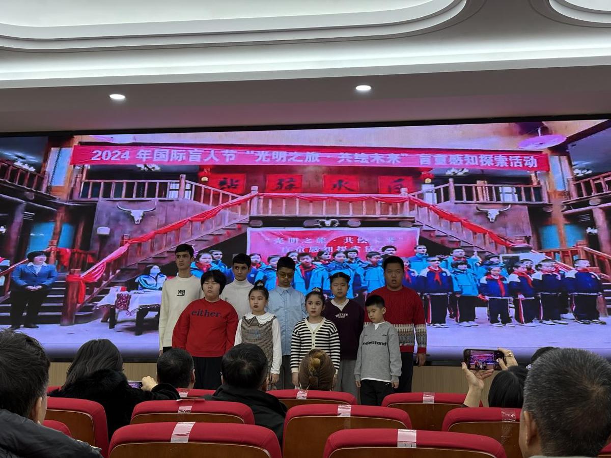 图为活动中,新疆残疾人福利基金会“逐光合唱团”的孩子们共同进行歌曲演唱。