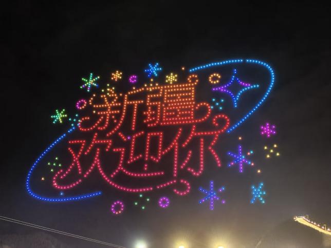 如果说文艺展演是文化的“软表达”,多元特色视觉展演则以震撼“硬呈现”将活动推向高潮。非遗打铁花表演中,艺人挥洒炽热铁花,漫天星火与皑皑白雪相映,让古老民俗在冰雪场景中焕发新生;同步上演的烟花秀,绚烂色彩划破夜空,与雪山背景构成绝美画卷;无人机组成的光影秀更是高光时刻,“冰雪来BAO”“骄阳看雪 乌鲁木齐”等字样及雪山剪影次第呈现,实现科技与冰雪主题的深度融合,全方位展现城市冰雪活力与旅游品牌形象。