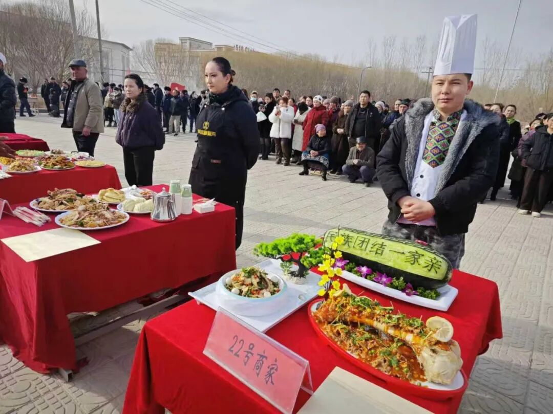 在新疆库车市齐满镇文化广场上,“齐满小当家·中华料理”美食争霸赛火热开赛。来自全镇19个村的23名选手同台竞技、各展厨艺。切菜的铿锵声、翻炒的滋啦声、村民的欢笑声此起彼伏,浓浓的烟火气在广场上弥漫。