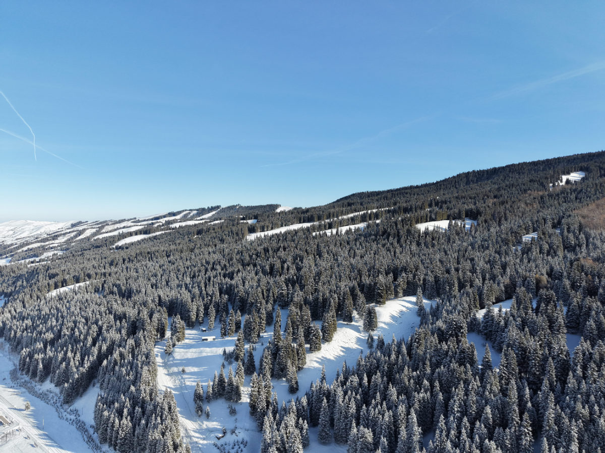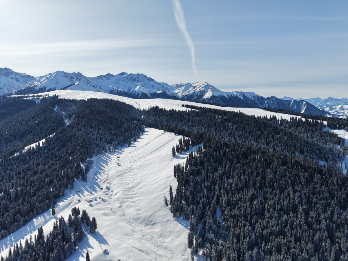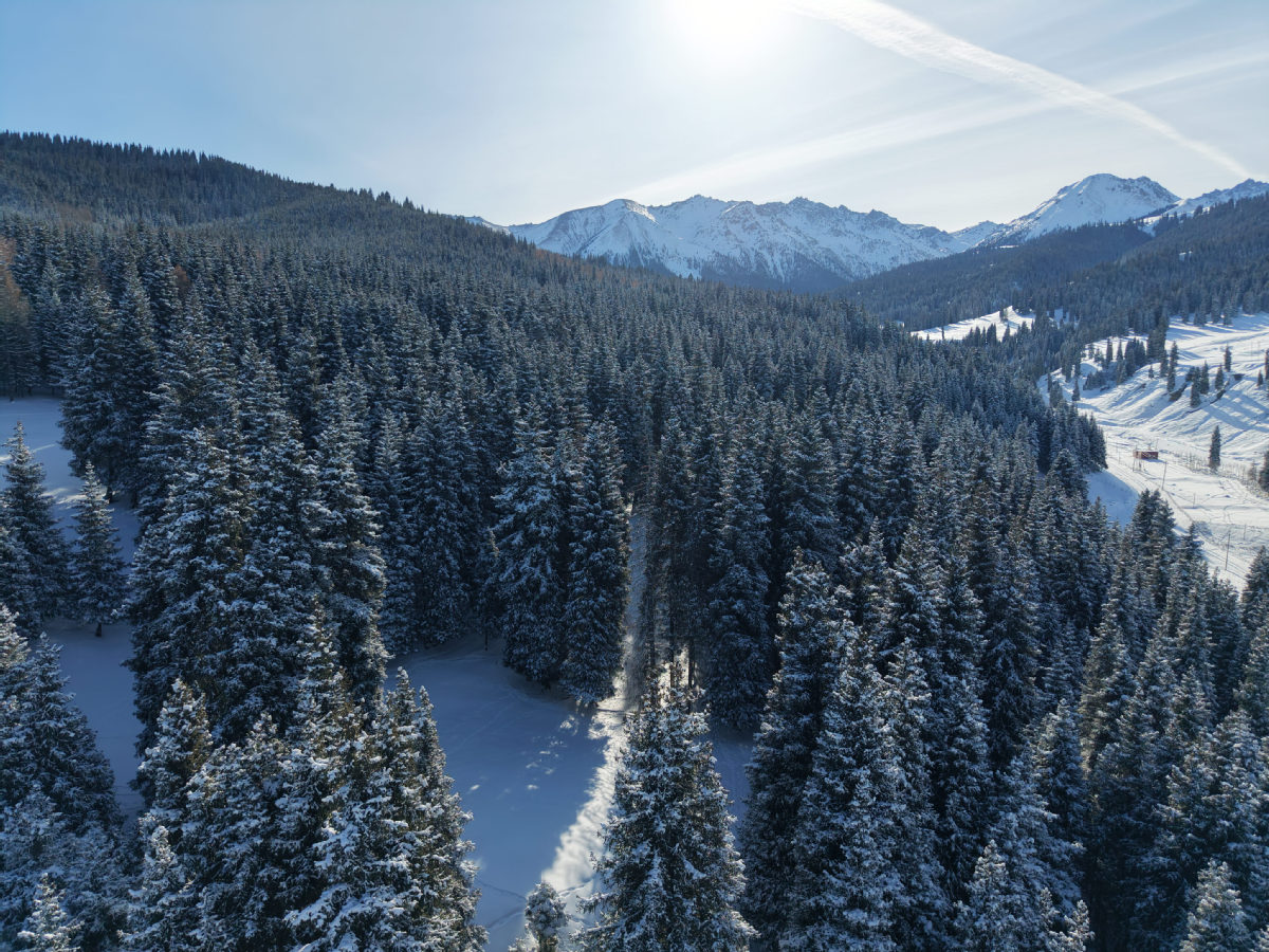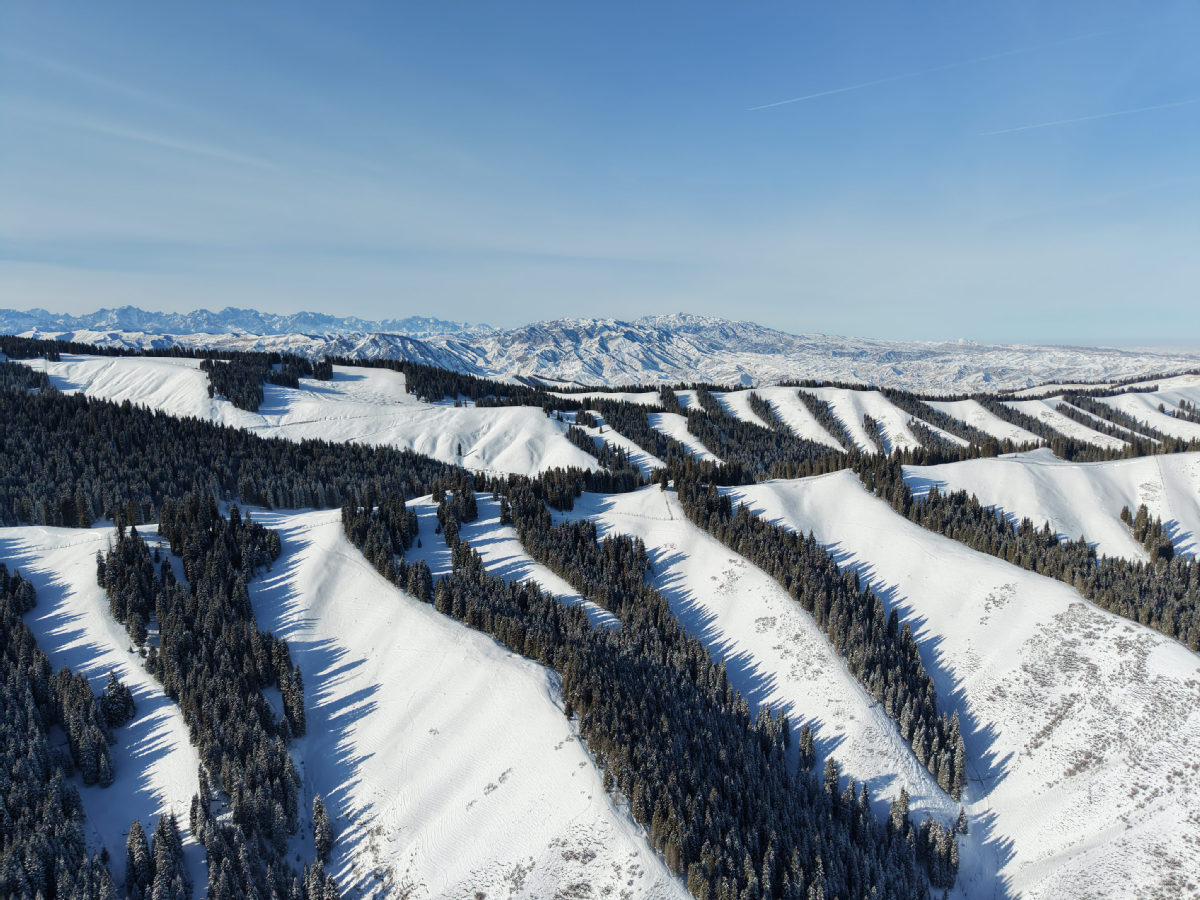这几天,新疆昌吉市南部山区雪后初霁,整座山区化身壮阔的林海雪原,景致纯净动人。