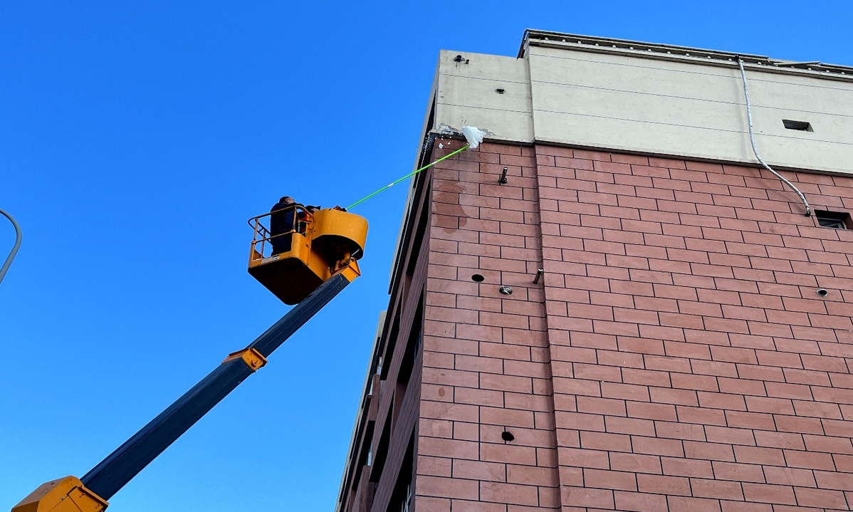 考虑到冰柱清理难度,区城市管理局公共照明维护管理所调配专业登高车支援作业。作业现场,操作人员在登高车的配合下,手持专业工具敲除冰柱。地面上,社区工作人员紧盯高空作业情况、及时提醒安全。