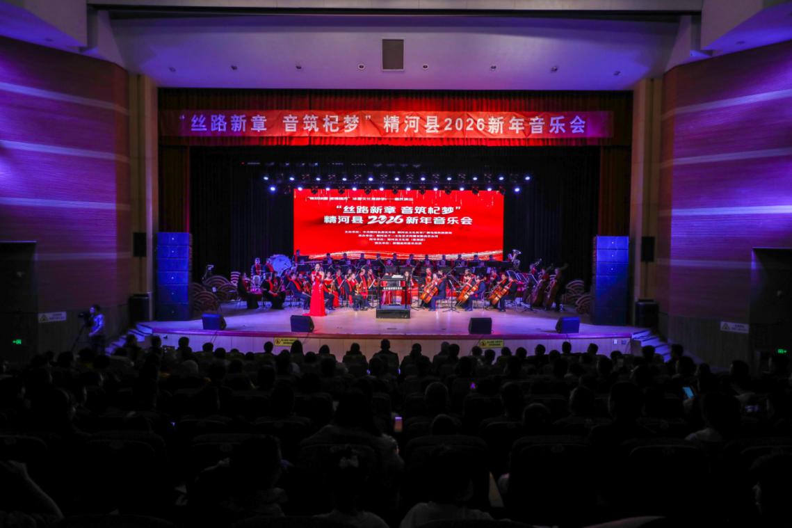 岁暮天寒,雪韵精河。12月27日晚,新疆精河县人民剧院内华灯璀璨、旋律飞扬,“丝路新章 音筑杞梦”精河县2026新年音乐会在这里奏响。一场兼具经典底蕴与时代气息的音乐盛宴,为全县各族干部群众送上温暖真挚的新春祝福,以悠扬乐章奏响新年序曲,共启美好征程。