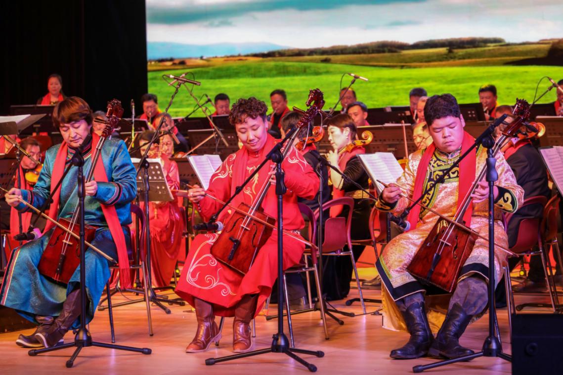 随着激昂雄壮的《春节序曲》铿锵奏响,音乐会正式拉开帷幕。欢快热烈的旋律瞬间点燃全场,将观众带入喜庆祥和的新年氛围。随后,一系列精心编排的经典曲目轮番上演。深情婉转的《美丽的新疆》,唱出对这片热土的无限热爱;女声独唱《我的草原》,以醇厚嗓音诉说草原儿女的豪迈与乡愁;马头琴齐奏《万马奔腾》、男女声二重唱《双脚踏上幸福路》、组合演唱《母亲是中华》等节目精彩纷呈。演员们倾情演绎,台下掌声阵阵,现场气氛一次次推向高潮。