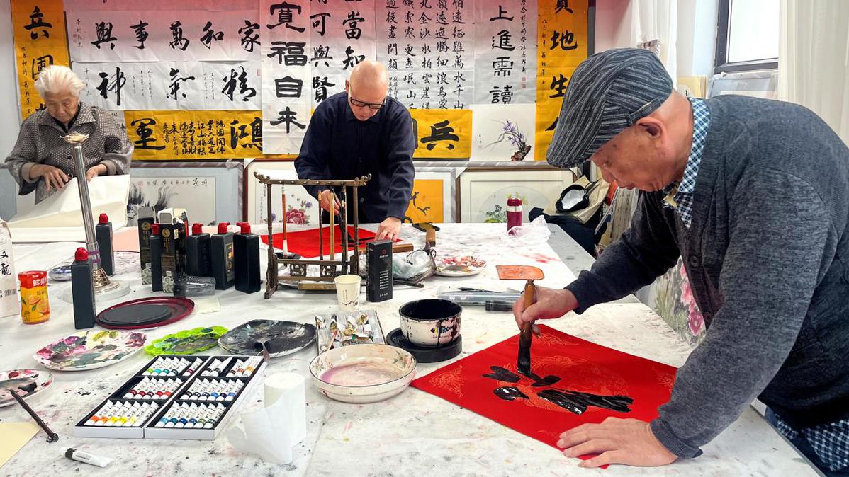 红纸铺开,墨香四溢。在牛奶巷社区活动室,75岁的王金堂阿姨正挥毫泼墨,一个饱满的“福”字跃然纸上。周围挤满了街坊邻居,有的帮忙压纸,有的仔细端详。