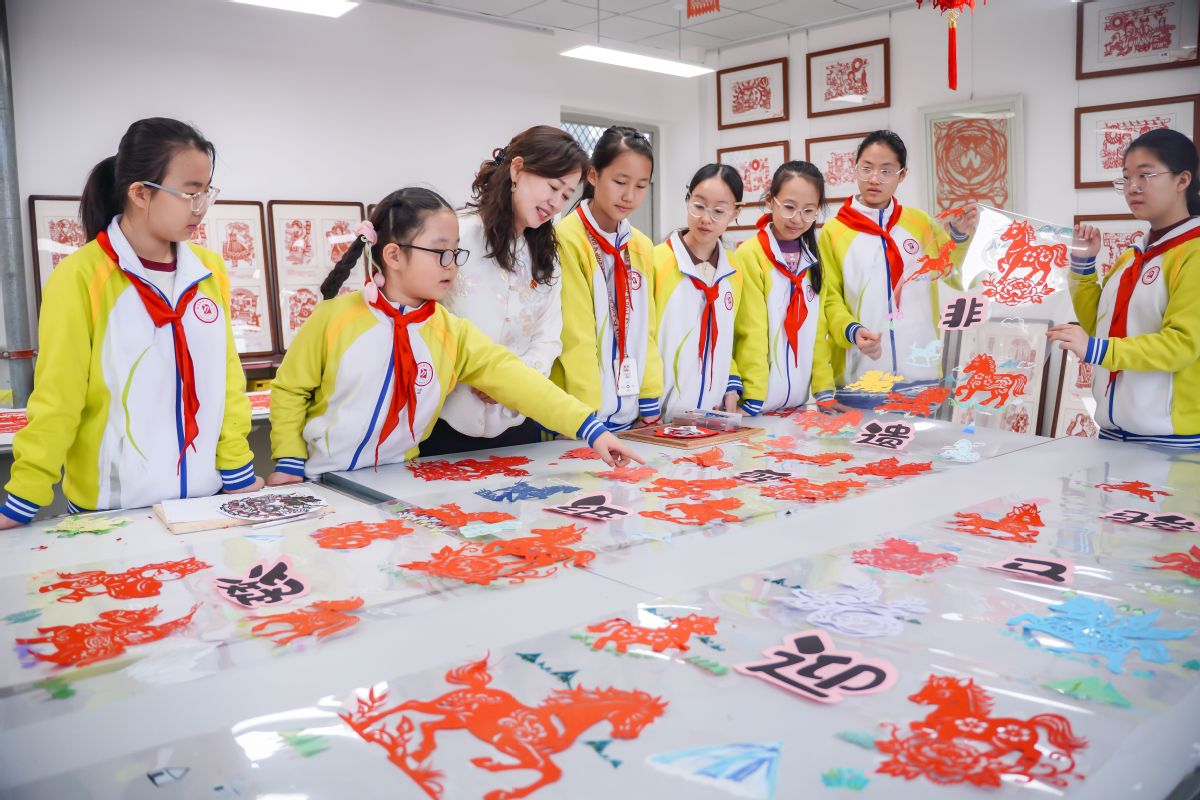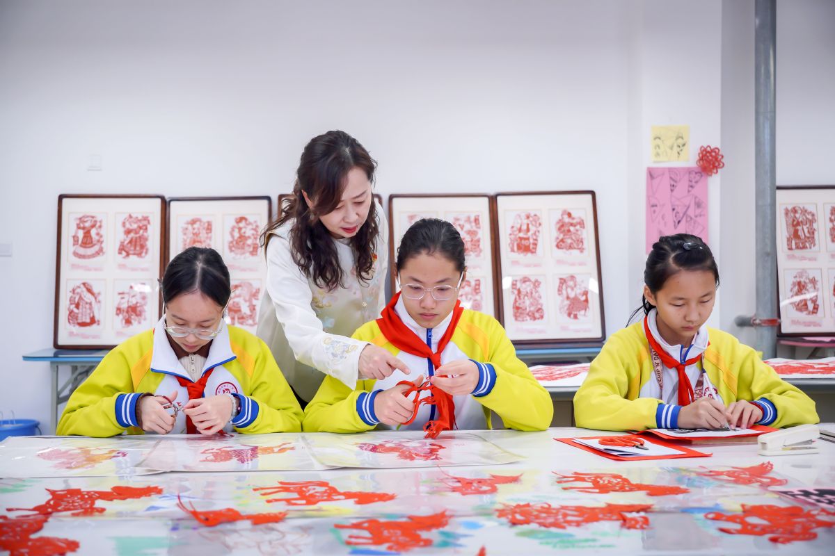 该社团自2017年成立以来,已吸引数千名学生参与。每周的社团活动与课后延时课上,孩子们在剪刀起落间感受传统技艺的魅力。“孩子们刀工越来越娴熟,作品也获得了认可。”于艳说,“我们把普通的红纸变成生活中的艺术品,这就是对非遗剪纸的传承。”学生但欣窈分享道:“学习剪纸两年多,每到过年给亲友剪纸,得到夸奖时特别快乐。我会一直剪下去,把这份快乐传递下去。”