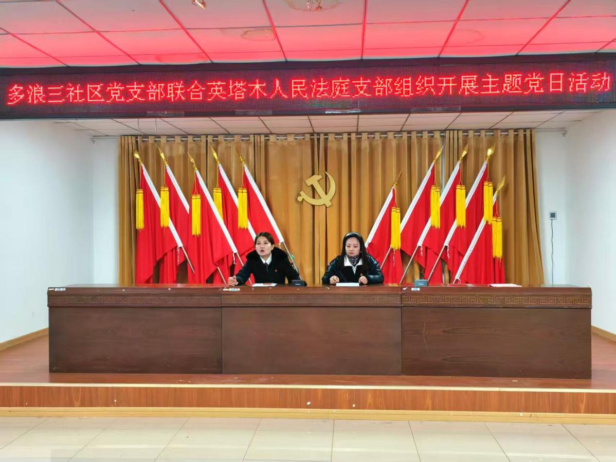 1月26日,新疆伊宁县人民法院英塔木人民法庭支部联合伊宁县英塔木镇多浪三社区党支部携手开展以“党建引领法治宣传,初心筑牢信仰之基”党日活动。