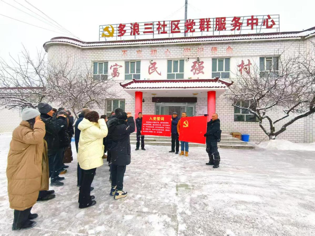 活动最后,全体党员在皑皑白雪的映衬下,面向鲜红的党旗庄严列队。“我志愿加入中国共产党,拥护党的纲领,遵守党的章程……”党员们举起右拳,眼神坚定,神情肃穆。白雪与党旗相映成景,更彰显了党员干部矢志不渝跟党走、全心全意为人民服务的坚定信念。