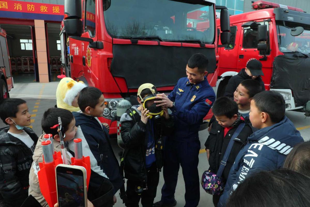 小朋友阿不都热合曼·艾合买提说:“我自己试了试,感觉这些挺重的。消防员叔叔救火非常辛苦,我们以后要注意消防安全。”