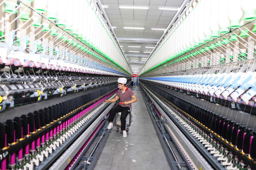 喀什经济开发区某纺织企业员工在车间巡检。(资料图)喀什地区融媒体中心 记者陈文军 摄